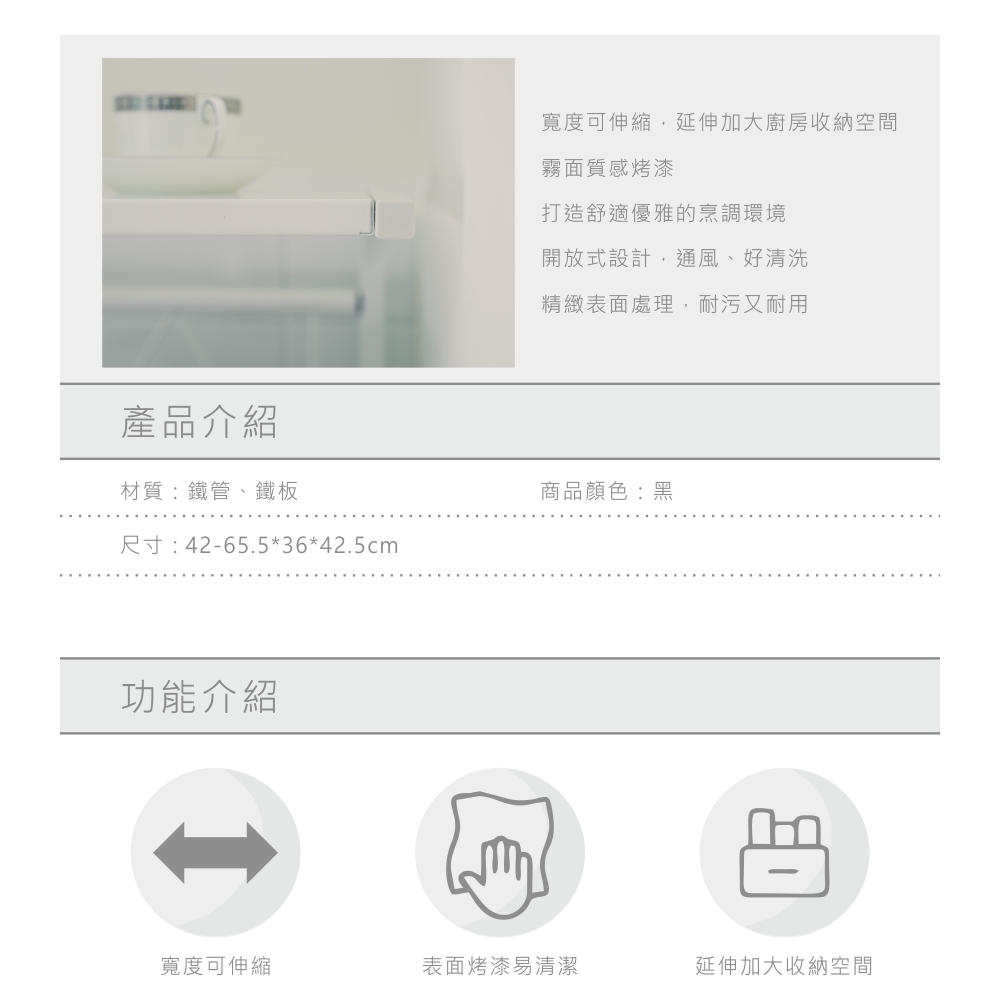 ◆ 寬度可伸縮,延伸加大廚房收納空間
